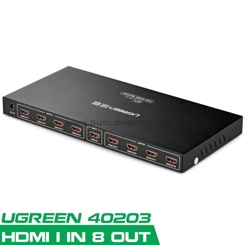- Bộ chia HDMI 8 cổng chính hãng Ugreen 40203 là một thiết bị cho phép người dùng kết nối bất kỳ thiết bị phát hình ảnh kỹ thuật số chất lượng HD, chẳng hạn như: Android tv box, DVD, truyền hình vệ tinh, PC, Xbox, PS3 và nhiều hơn nữa ra 8 màn hình hiển thị HDMI cùng lúc với chất lượng hình ảnh, âm thanh sắc nét sống động với độ phân giải cao.
