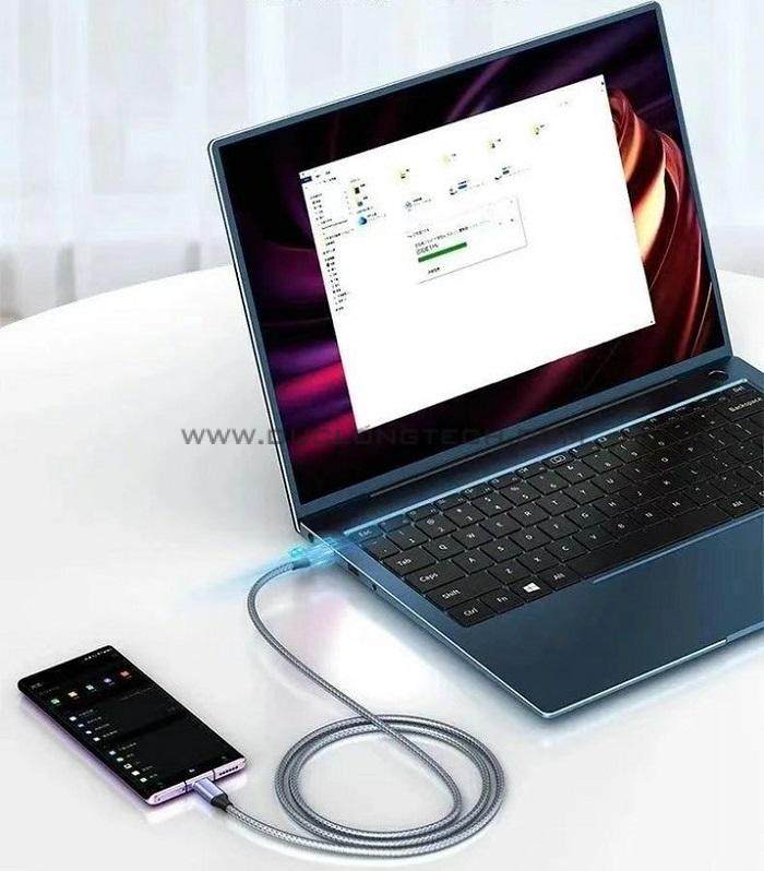 - Cáp Veggieg V-H908 hỗ trợ sạc nhanh máy tính xách tay hoặc điện thoại thông minh chuẩn USB-C ở dòng điện tối đa 20V 5A, hỗ trợ sạc nhanh 100W.