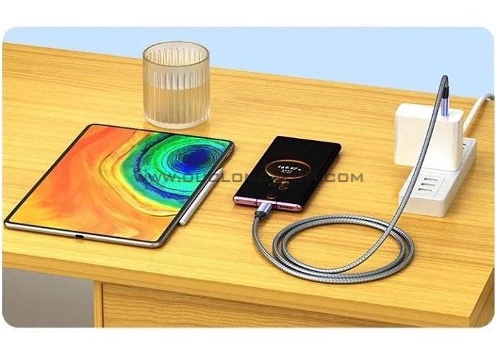 - Bên cạnh công suất sạc lớn, cáp còn sở hữu thiết kế bọc dù mang lại khả năng uốn cong ấn tượng. Cụ thể, cáp sạc với khả năng uốn cong, bền bỉ khi sử dụng.